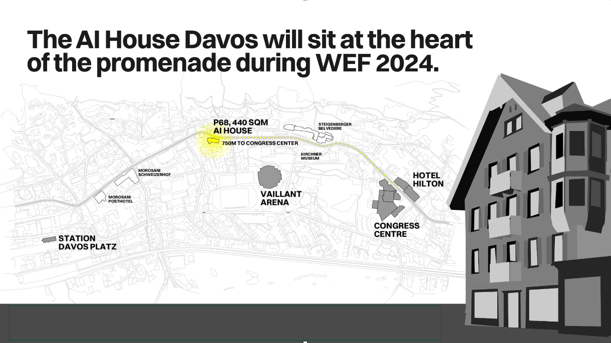The AI House Davos is a multidisciplinary, multi-stakeholder platform for the global conversation on AI progress, bringing together leaders of top AI research institutions, tech, industry, policy and politics, civil society. Located in the heart of the main promenade, 750M to the Congress Center. Bringing together the ”the world of AI” with partners from all continents.